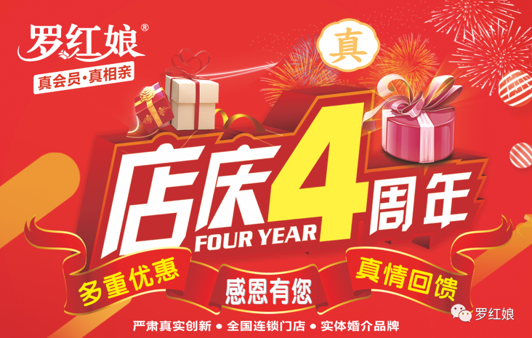 罗红娘于2019年8月创办,在这个特别的四周年日子里,我们特别为您打造了一系列丰富多彩的优惠活动,以感谢您对我们的信任和支持,同时助您开启幸福之门。