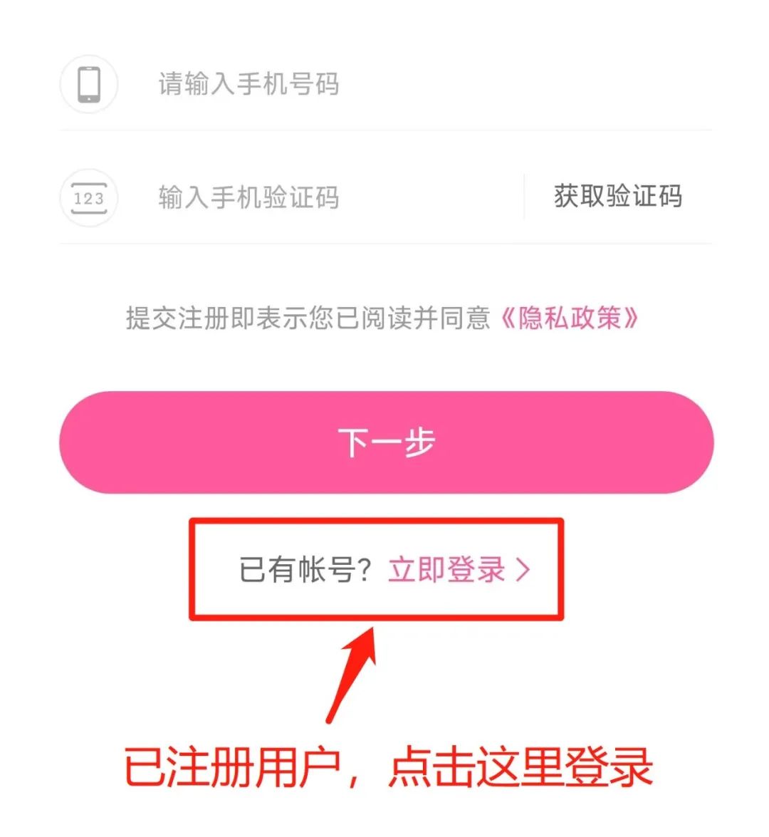 第一步:点击立即注册之后,点下方的“立即登录”