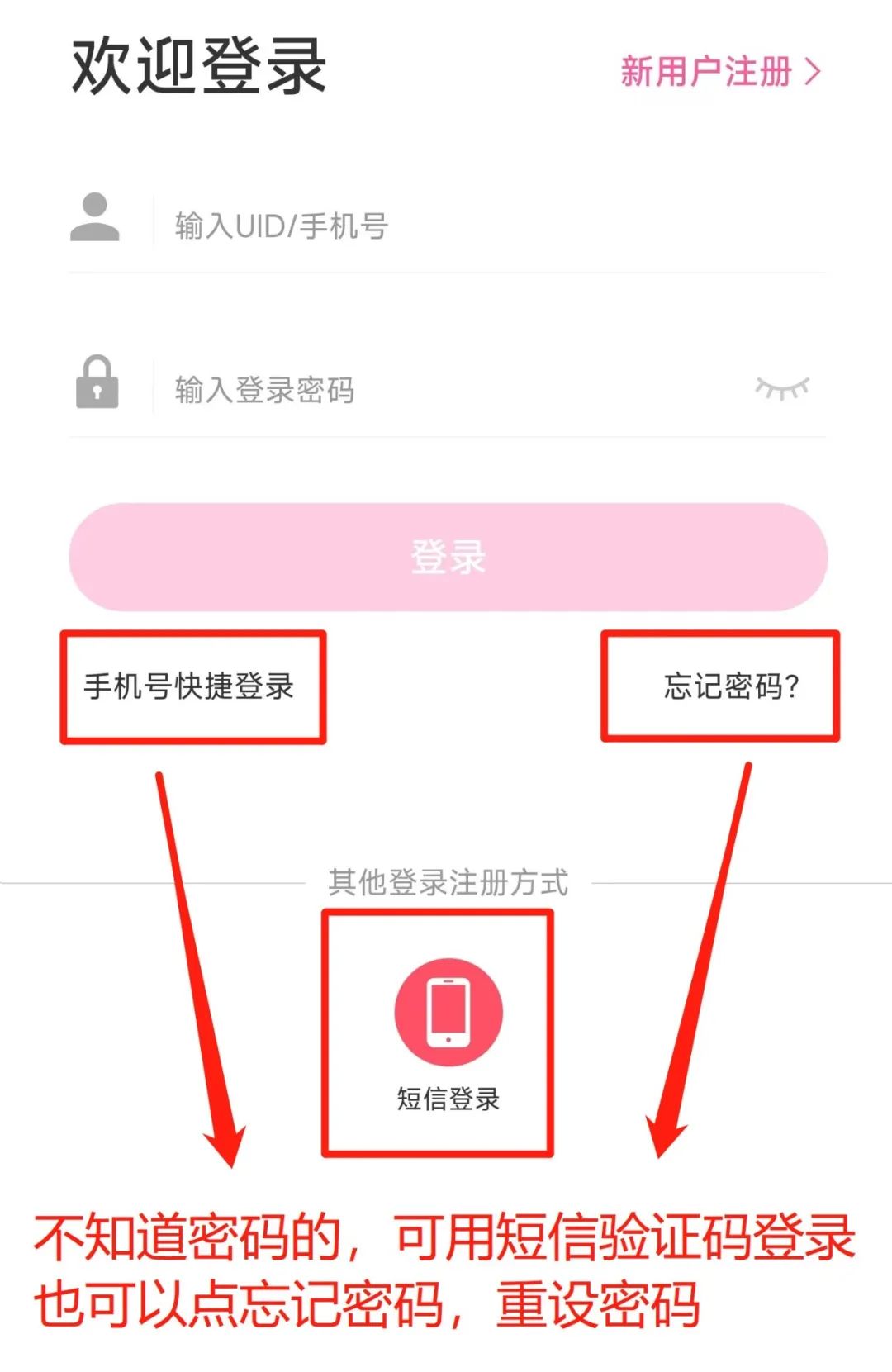 第二步:输入手机号和密码登录,或用短信验证码登录