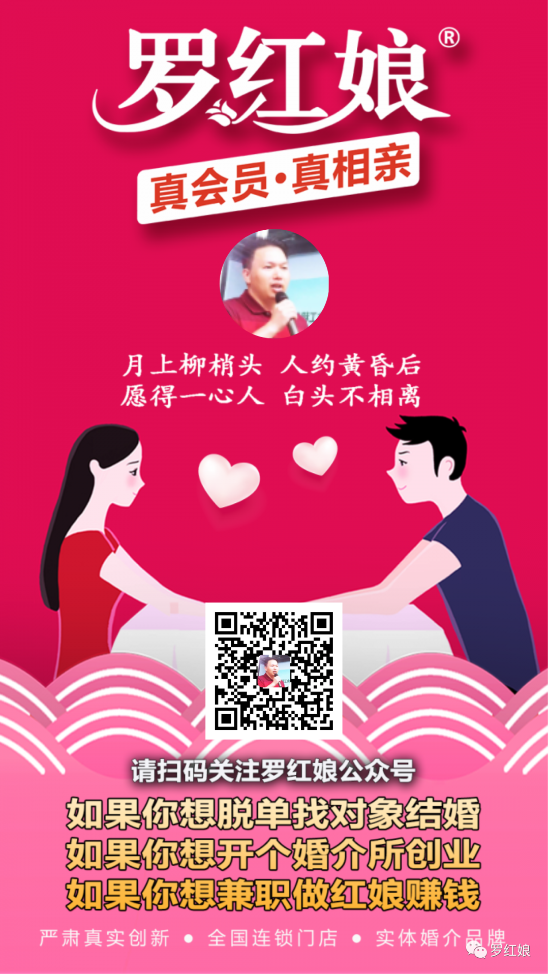1、欢迎政府机关、事业单位、企业、机构、协会、大型商场、景区等,联系罗红娘合作举办免费的公益相亲会,帮助更多单身青年男女脱单,利国利民,造福社会。